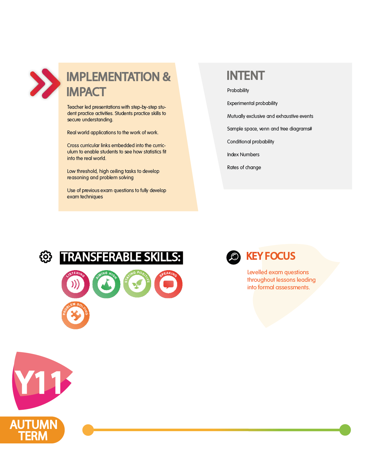 GCSE Statistics is for all learners, its tiered entry at either Foundation or Higher supports all students to progress and be challenged. We aim to stretch and challenge our most able students yet remain supportive for students who may struggle with various concepts
